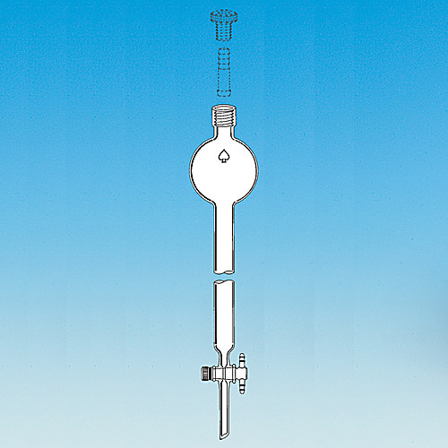 Chromatographic column with integral reservoir and #15 Ace-Thred at top, and 2mm bore 1:5 taper PTFE plug at bottom. Column supplied with 7506-06 Nylon bushing and FETFE O-Ring. Complete item consists of column with bushing and O-Ring, and 5853-07 Tubing Connector for connecting 12.5 to 14mm O.D. tubing to column.
