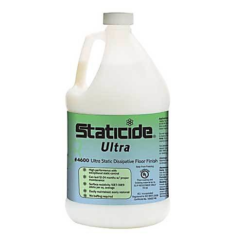 Ideal Choice for Clean Room Facilities No other ESD floor finish can match Staticide Ultra Floor Finish for electrical properties, physical longevity, and gloss. This urethane-enhanced formula features superior abrasion resistance and durability, fortifying floors with a long-lasting protective layer that is shiny and ESD-safe for 12 to 24 months. Ideal choice for any static control environment, such as electronic, medical, clean room manufacturing facilities and sensitive device manufacturing. Coverage is approximately 1500 ‰ÛÒ 2000 sq. ft. per gallon V.O.C. is less than 4% Solids are 20%å± 5% UL listed for slip resistance Compliant to ANSI/ESD S20.20 Surface resistivity 107 ‰ÛÒ 109 ohms per square Strip cycle is 12 – 24 months Use on vinyl, linoleum, or ceramic tile