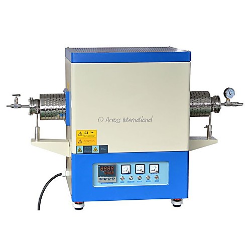 TF1800 series tube furnaces feature a chamber with Mitsubishi (Japan) high quality 1900 grade alumina fiber insulation and the famous Kanthal (Sweden) 1900 grade molybdenum silicide heating elements. A double walled steel internal housing helps minimize heat loss to exterior surface. Furnace operation is controlled by Shimaden (Japan) 40-segment digital controller with built-in RS485 digital communications port and USB adaptor, allowing the user to connect to a PC for remote control and monitoring of the furnace. You can also save or export test results. All our furnaces are CE compliant. Features Compact, portable and lightweight design. Standard package includes set of stainless steel vacuum sealing flanges with valves and pressure meter. Dual flanges support ensures better sealing and longer tube life. Microprocessor based self-tuning PID control provides optimum thermal process with minimal overshoot. Multiple atmosphere processes in a single cycle are possible (ex: binder burn out in air and parts sintering under rough vacuum or inert gas environment.) Built-in ammeter and dual voltmeters for easy monitoring and troubleshooting. Built-in computer interface. Long life type B thermocouple. Safety Overheat protection shuts down the furnace if temperature is outside of acceptable range (refer to controller's manual) or when the thermocouple is broken or malfunctions. Power failure protection resumes furnace operation right after the point of failure when power is reestablished. Warning! NEVER fill furnace with explosive gases, including Hydrogen, Carbon Monoxide and Methane.