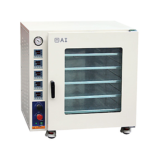 With our unique internal shelf heating technology , each shelf in these ovens has its own heater, in-shelf temperature sensor and temperature controller, together with great thermal-conducted aluminum and our low proportional controller technologies, the result is perfect uniformity, accurate temperature, super-fast heating rates, minimum heat loss/exterior temperature and very low power consumption. Easy-to-clean stainless steel interior for great durability and ease of maintenance Built-in check valve prevents vacuum oil backflow All steel construction for excellent durability Every one of our vacuum ovens goes through a 2-time 24-hour vacuum leak test, and is 100% quality controlled in New Jersey or Nevada before leaving our facilities. Attention: Before initial use, run oven at 400°F without vacuum for 15 minutes to burn off any residue that may have been introduced during the manufacturing process. IMPORTANT! NEVER LEAVE YOUR OVEN UNATTENDED WHILE OPERATING.