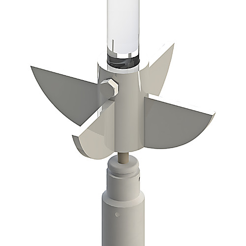 PTFE, large-scale, multi-paddle agitator design to accept pinned bottom valves, like our 6482 flush-seal valve. The pin helps reduce wobble or flexing at higher rpm. 28mm agitators will fit drilled type 8080 shafts.