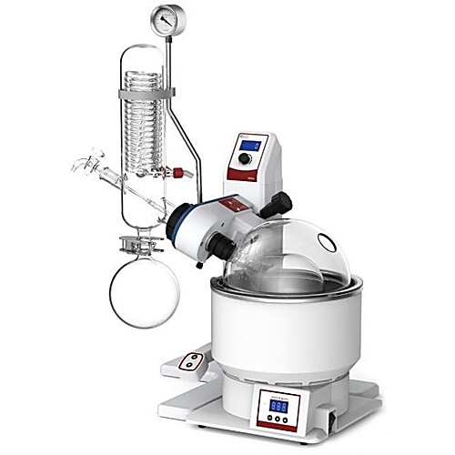 Ai SolventVap 2L (evaporating flask capacity) series rotary evaporators come with a modular heating bath, vertical glassware, and digital temperature/rotation control. Its optimized bath volume allows for rapid heat-up times. The condenser unit has specially designed glass tubes that utilize surface area extremely efficiently. Thats why our SolventVap evaporators consistently deliver reliable and reproducible process results that are usually reserved for more costly systems. Another important aspect of the SolventVap is the safety features, which includes dry-run protection, water bath over-temperature shut-off protection, and fuse protection. New electric evaporator flask lift, nonexposed water bath heater, and plexiglass bath cover, standard Solvent-resistant PTFE and Viton gaskets ensuring long time operation. Specialized motor with extremely compact, intermeshed worm and worm gear provides precise driving for very quiet, vibration-free operation. Downward-condensing vacuum connection design ensures safe vacuum operation. Modular design (individual rotary and water bath modules) for easy future upgrades. Easy multi-level manual lift with secure lock for the evaporating flask. Easy, straight-forward visual operation with digital speed and temperature display. PID temperature controller ensures accurate temperature control is maintained. Your safety is important to us! Please use caution when operating. Users of glass reaction equipment must take all necessary precautions to avoid contact with rotating parts, particularly entanglement of loose clothing, hair, necklaces, or other jewelry. Under these circumstances, the winding action of the rotating parts can draw the user(s) into the apparatus, resulting in breakage of glassware, burns, and/or chemical exposure. Extra caution must also be taken when operating with air-reactive materials, especially under vacuum. A leak can draw air into the apparatus and cause a violent reaction to occur.