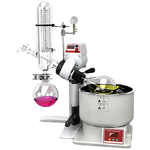 The Ai SolventVap series rotary evaporators come with a modular heating bath, vertical glassware, and digital temperature/rotation control. Its optimized bath volume allows for rapid heat-up times. The condenser unit has specially designed glass tubes that utilize surface area extremely efficiently. That’s why our SolventVap evaporators consistently deliver reliable and reproducible process results that are usually reserved for more costly systems. Another important aspect of the SolventVap is the safety features, which includes dry-run protection, water bath over-temperature shut-off protection, and fuse protection. Rotary evaporator features a specially designed motor and worm gear, which provides constant rotation at speeds from 10 to 180 rpm. As the flask containing the solvent is rotated, it continually transfers a thin layer of liquid over the entire inner surface. This gives a very large surface area for evaporation, which is caused by the gentle heating from the water bath. The rotating system is fitted with a special seal that allows the apparatus to be placed under vacuum, effectively reducing the boiling point of the solvents and removing the vapor phase, making the process much more efficient. Each unit is also equipped with an easy-to-use vacuum release and a continuous feed system, which allows solvent to be constantly drawn into the rotating flask without needing to stop the operation. Digital water bath operates from ambient temperature to 99°C (210°F) with PID temperature control stepping at 0.1°C increments. Heating coils are located directly inside the pan for the most efficient heating possible. A built-in overheat protector will shut down power, should the controller fail. Features  Solvent-resistant PTFE and Viton gaskets ensuring long time operation.  Specialized motor with extremely compact, intermeshed worm and worm gear provides precise driving for very quiet, vibration-free operation.  Downward-condensing vacuum connection design ensures safe vacuum operation.  Modular design (individual rotary and water bath modules) for easy future upgrades.  Easy multi-level manual lift with secure lock for the evaporating flask.  Easy, straight-forward visual operation with digital speed and temperature display.  PID temperature controller ensures accurate temperature control is maintained.