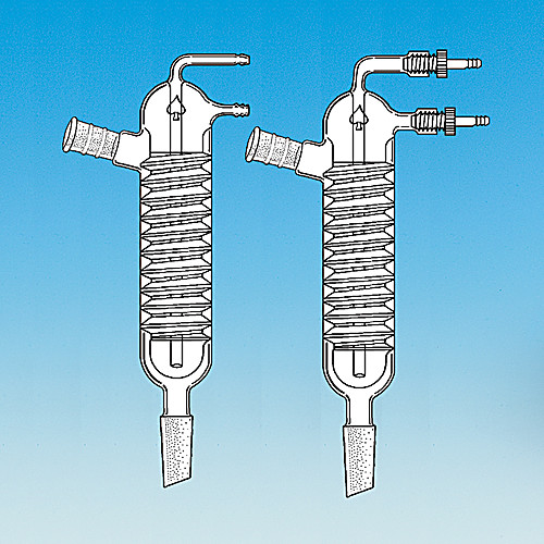 With molded spiral condensing surface and joint at bottom and top. Jacket length 250mm. Available in various joint sizes with hose barbs or Ace-Safe connectors.