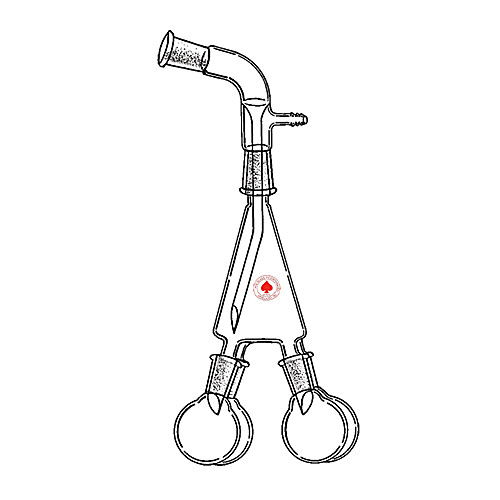 Distilling receiver for use where separate fractions are desired without disturbing distillation pressure. Joints are 24/40. Receiver is 5 mL. Hose connection is size B, for use with 5/16in (7.9mm) or 3/8in (9.5mm) ID tubing. For version with 14/20 joints, or PTFE- clad version with 14/20 joints, see 9400. For 50 mL flask, see 6887-20. For joint clip, see 7598-24.