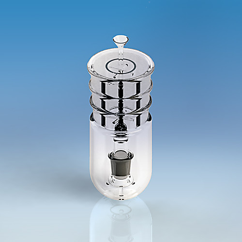 For extraction with liquids of lighter density than liquid extracted such as water with ether; 9422 and 9414 are used with extraction flask 9451.