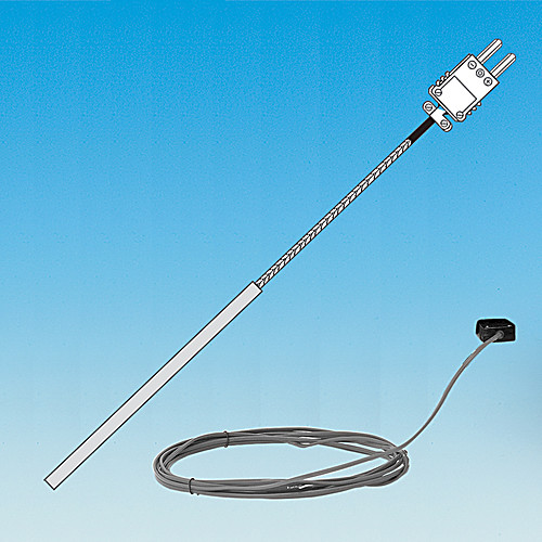 Type J temperature probes provide economical measurement from -20 degrees C to 550 degrees C. Probes available sheathed with stainless steel, inconel or simply insulated wire. Code -26 extension will allow the use of a controller up to 8 feet away. See code -27 for extra mini plugs.