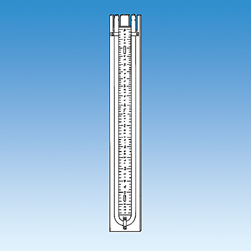 With standard U shape gauge made of heavy barometer tubing and mounted on a wooden panel for vertical suspension. The scale is adjustable and accurately calibrated. Supplied with scale and tubes, but without mercury.