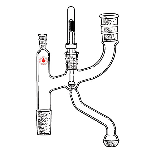 A small, low holdup automatic head which can be completely disassembled for easy cleaning or replacement of parts. Lower column joint and side arm for condenser are 24/40. Joint on takeoff arm is 28/11. The plunger guide is 19/38 and the 10/30 thermometer joint may be used with our 8314 product family thermometers. Plunger activation is accomplished with our 6590 electromagnetic coil. Order thermometer and coil separately.