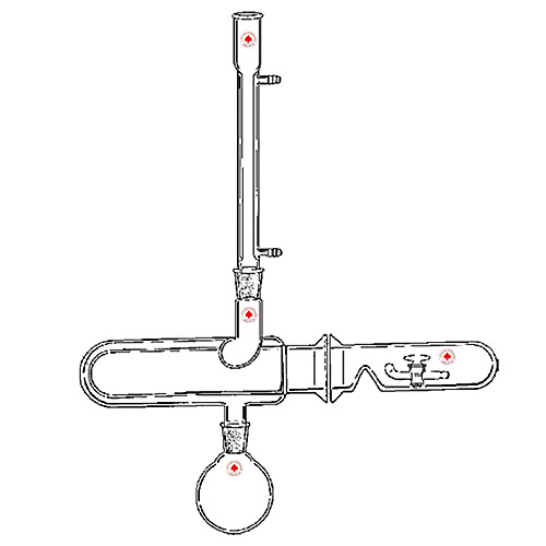 Design replaces the joint connection normally found between the with a 60mm I.D. flat flange and a quick release stainless steel clamp. on drying chamber has a groove for a silicone O-Ring to make a leak-tight flat flange on desiccant tube. Joints on condenser and flask are 24/40. item consists of condenser, drying chamber, desiccant tube, flask, and O-Ring.