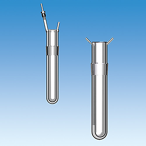 Double-walled, quartz Immersion Well for use with 7825-30, -32, -34, and -36 lamps. With inlet and outlet tubes for cooling or modified with a 4.8mm I.D. PTFE tube attached to a glass tube and secured with a #7 Ace-Thred bushing. Inlet tube extends down the annular space to insure flow of coolant from bottom of well upward to outlet. Well has 60/40 inner joint. O.D. of outer jacket is 53 mm max. Length above joint, 76mm.