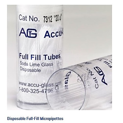 Full Fill Micropipettes cut to predetermined lengths for consistent and precise performance Produced with Soda Lime Glass that meets USP Type III specifications. Clean and Disposable Dependable, fast, easy to Use Made in USA
