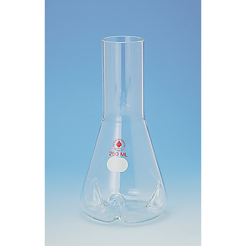 Fernbach style culture flask with 38mm long style straight neck to accomodate plastic or stainless steel closures, see Ace 3917 & 3918 product families. Flat bottom, no baffles. Caution! Do not place on direct heat source.