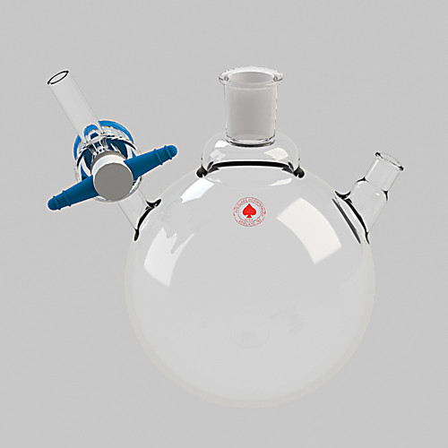 Used for collection and short term storage of solvents. With 2 mm bore PTFE stopcock and standard taper 14/20 joint. A serum cap stopper is used on side port for syringe removal of solvents.